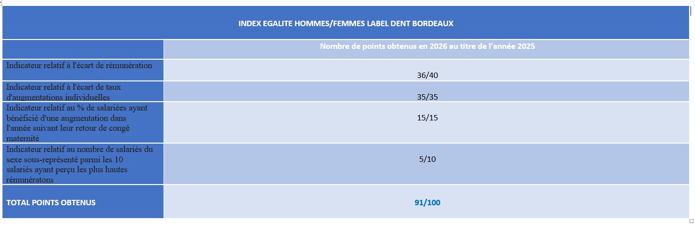 Index Egalité Hommes/Femmes 2026 au titre de l’année 2025